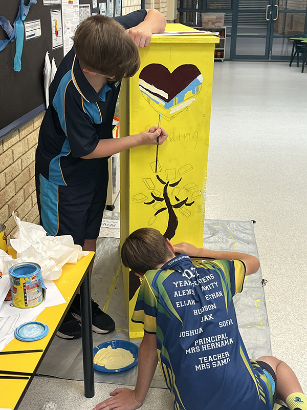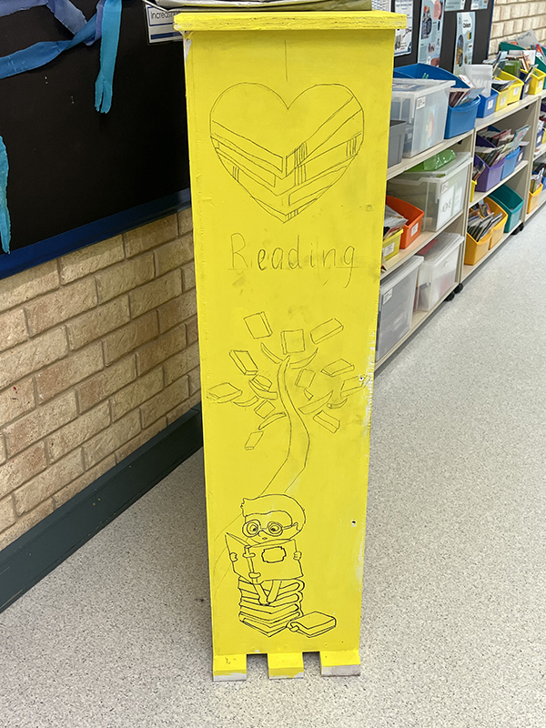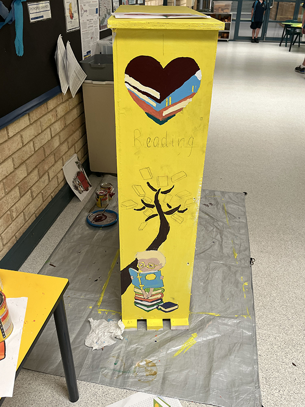 Eager to contribute, the school embraced the challenge. Students and staff worked together to design and decorate the bookcase, ensuring it would be vibrant, welcoming, and a standout feature in the local area.